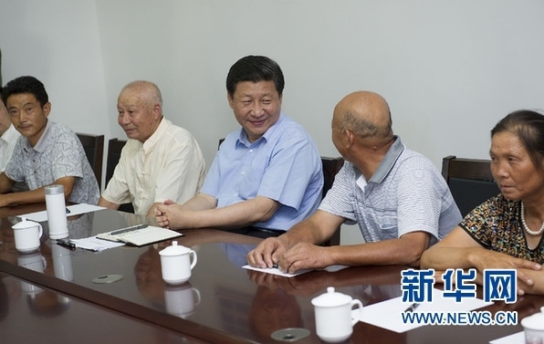 ▲2013年7月21日至23日,中共中央總書記、國(guó)家主席、中央軍委主席習(xí)近平在湖北調(diào)研全面深化改革問(wèn)題和當(dāng)前經(jīng)濟(jì)運(yùn)行情況。 22日下午,習(xí)近平來(lái)到鄂州市長(zhǎng)港鎮(zhèn)峒山村,了解城鄉(xiāng)一體化建設(shè)情況,同部分村民座談。