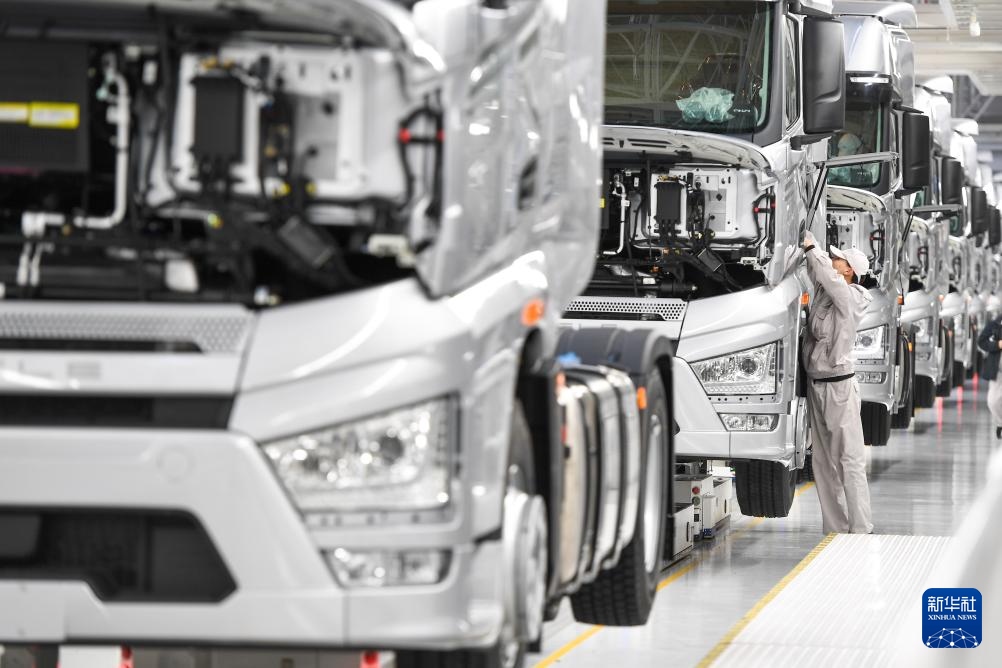 ??2024年2月19日,工人在位于吉林省長(zhǎng)春市的一汽解放J7整車智能工廠裝配車輛。新華社記者 張楠 攝