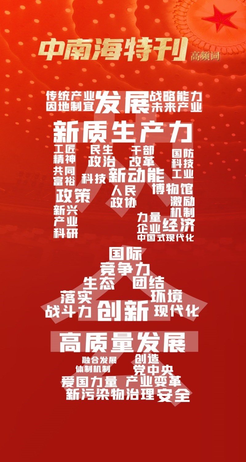 央視網(wǎng)I學習數(shù)據(jù)庫匯總分析總書記今年兩會期間重要講話顯示,“工匠精神”“新污染物治理”“博物館”等高頻詞持續(xù)升溫,引發(fā)熱議。這些解碼中國的高頻詞深刻印證了一種中國精神——歷史主動精神,彰顯了中國共產(chǎn)黨清醒的歷史自覺、堅定的歷史自信、強烈的責任擔當。