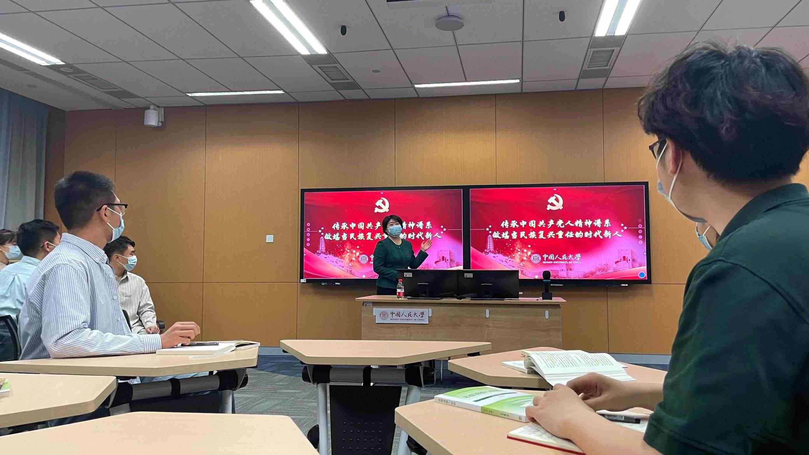 講臺前,授課教師、中國人民大學(xué)馬克思主義學(xué)院黨委書記王易正在播放視頻《陜北公學(xué)》,帶領(lǐng)同學(xué)們回顧“中國不會亡,因?yàn)橛嘘児钡募t色歷史,重溫人大人心中的延安精神。