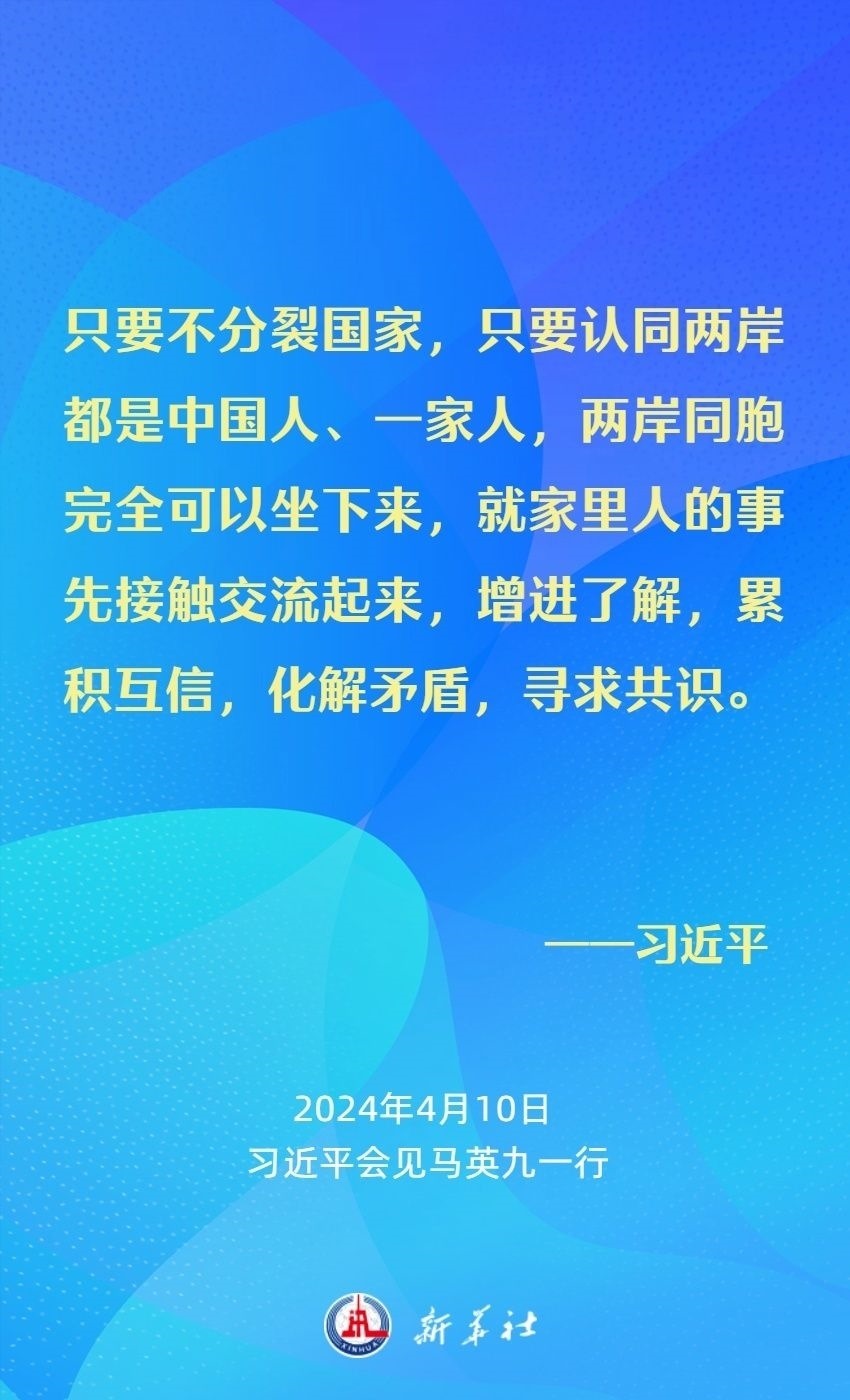 習近平強調(diào),兩岸同胞有共同的血脈、共同的文化、共同的歷史,更重要的是我們對民族有共同的責任、對未來有共同的期盼。我們要從中華民族整體利益和長遠發(fā)展來把握兩岸關(guān)系大局。