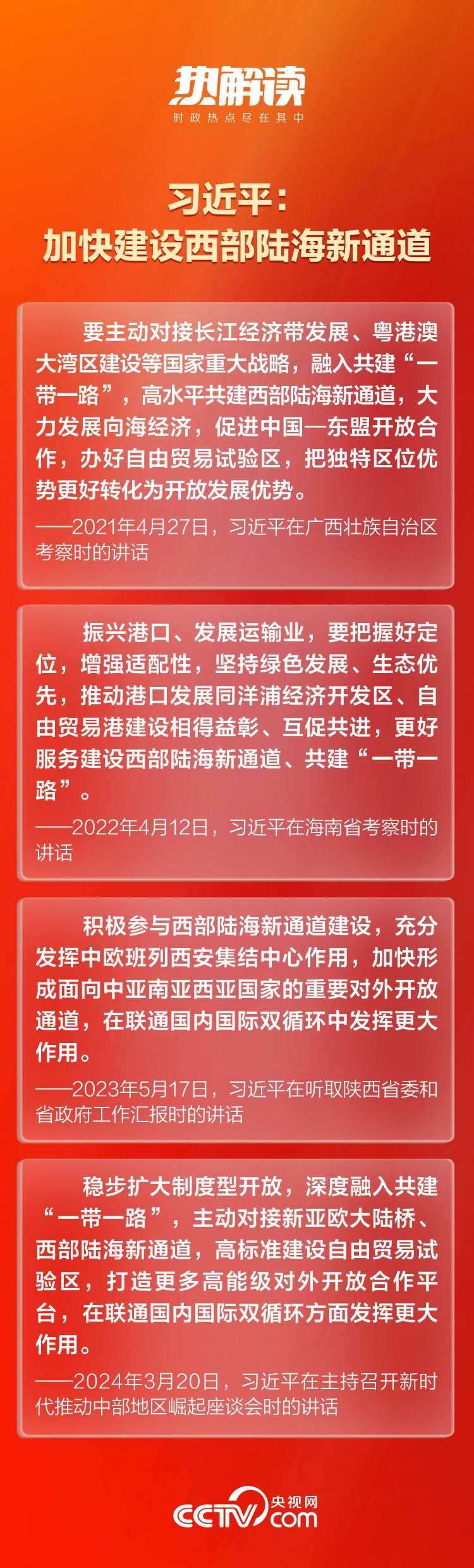 總書記一直對這條通道的建設(shè)十分關(guān)切。近年來,總書記在貴州、陜西、廣西等西部陸海新通道沿線省區(qū)考察時(shí),多次對高水平共建西部陸海新通道作出重要指示。