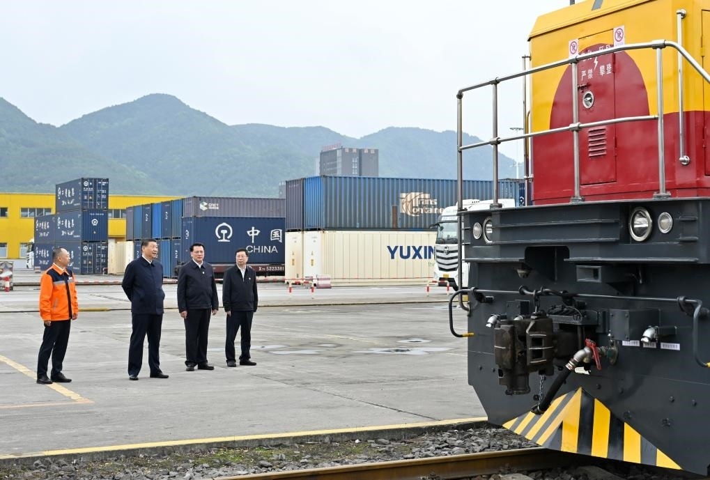 4月22日至23日,習(xí)近平總書記在重慶市考察調(diào)研。他來到重慶國際物流樞紐園區(qū),了解當(dāng)?shù)丶涌旖ㄔO(shè)西部陸海新通道等情況。