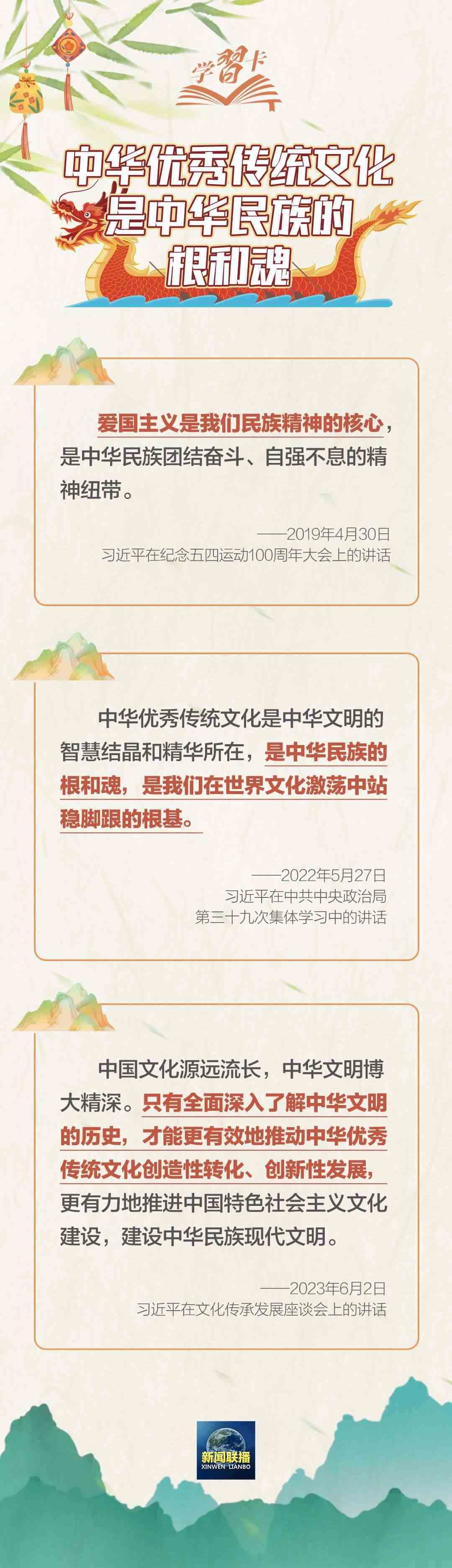 在棹影斡波、鼓聲劈浪中舉行龍舟賽,品嘗軟糯可口的香粽,門上掛艾草和菖蒲……端午節(jié)生動(dòng)印證了“中華優(yōu)秀傳統(tǒng)文化已經(jīng)成為中華民族的基因”,已成為弘揚(yáng)民族精神、激發(fā)愛國(guó)情感的重要載體。