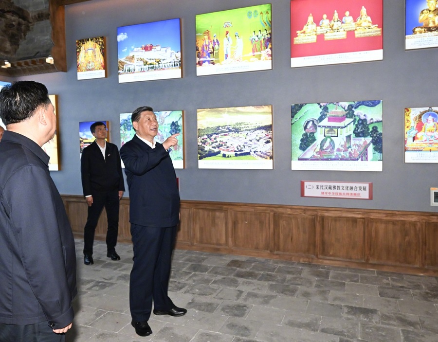 ??18日下午,習(xí)近平總書記在青海省考察調(diào)研。他先后來到西寧市的果洛西寧民族中學(xué)和宏覺寺,了解當(dāng)?shù)厣钊胪七M教育工作東西部協(xié)作和對口支援、加強鑄牢中華民族共同體意識教育和藏傳佛教界弘揚愛國愛教優(yōu)良傳統(tǒng)、促進民族團結(jié)進步等情況。