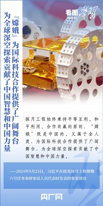 中國(guó)探月工程成果凝結(jié)著我國(guó)幾代航天人的智慧和心血。9月23日,習(xí)近平總書記接見探月工程嫦娥六號(hào)任務(wù)參研參試人員代表并發(fā)表重要講話??倳浉叨瓤隙ㄦ隙鹆?hào)任務(wù)成功的重要意義,以及探月工程為我國(guó)航天事業(yè)發(fā)展、為人類探索宇宙空間作出的重大貢獻(xiàn),勉勵(lì)航天戰(zhàn)線工作者再接再厲、乘勢(shì)而上,為建設(shè)航天強(qiáng)國(guó)再立新功。一起來(lái)學(xué)習(xí)!