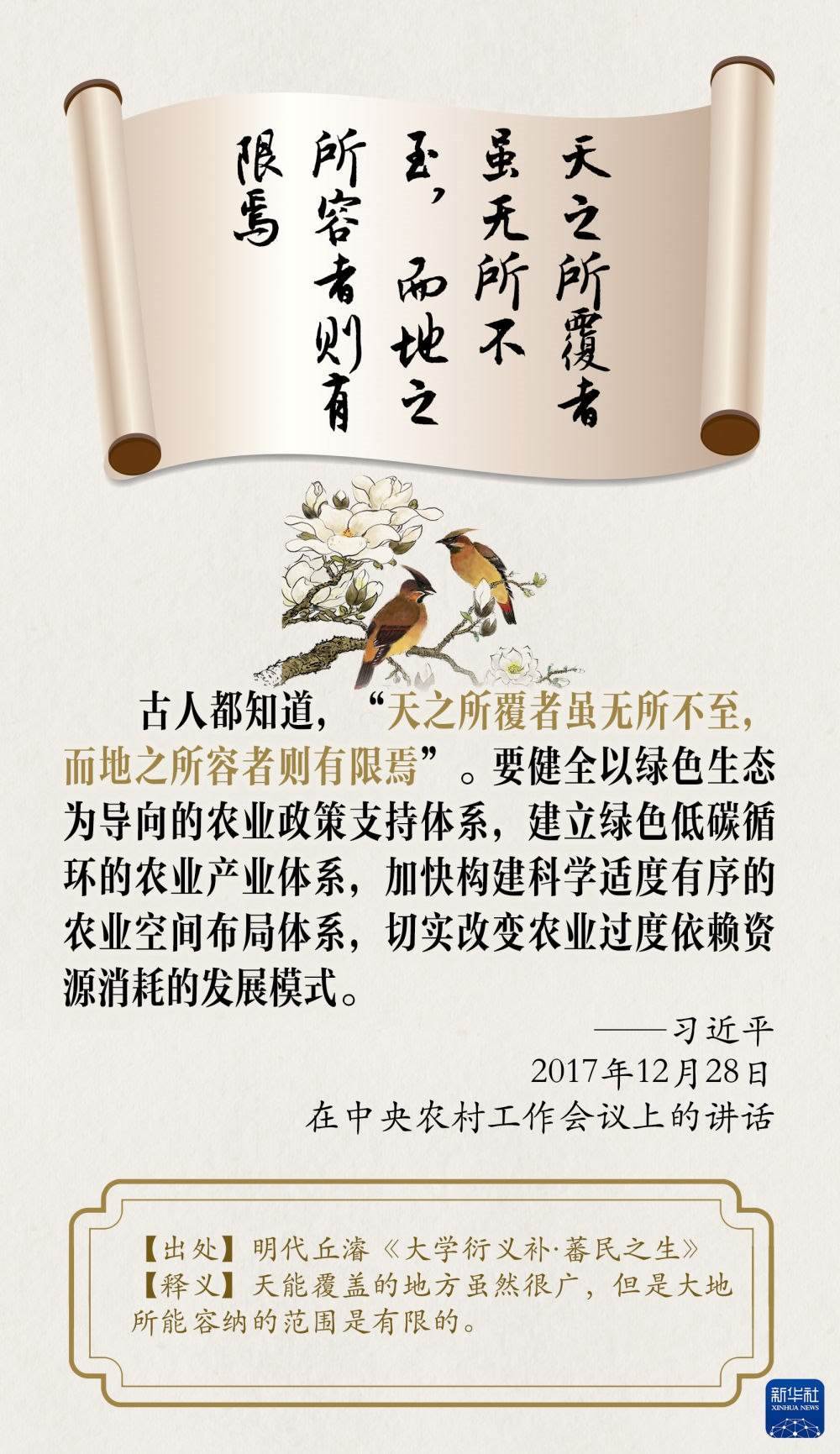 中華民族向來尊重自然、熱愛自然,綿延5000多年的中華文明孕育著豐富的生態(tài)文化。習近平總書記曾多次引用古語典故闡述生態(tài)文明,讓我們一起品讀,領悟其中的深刻警示和啟迪。