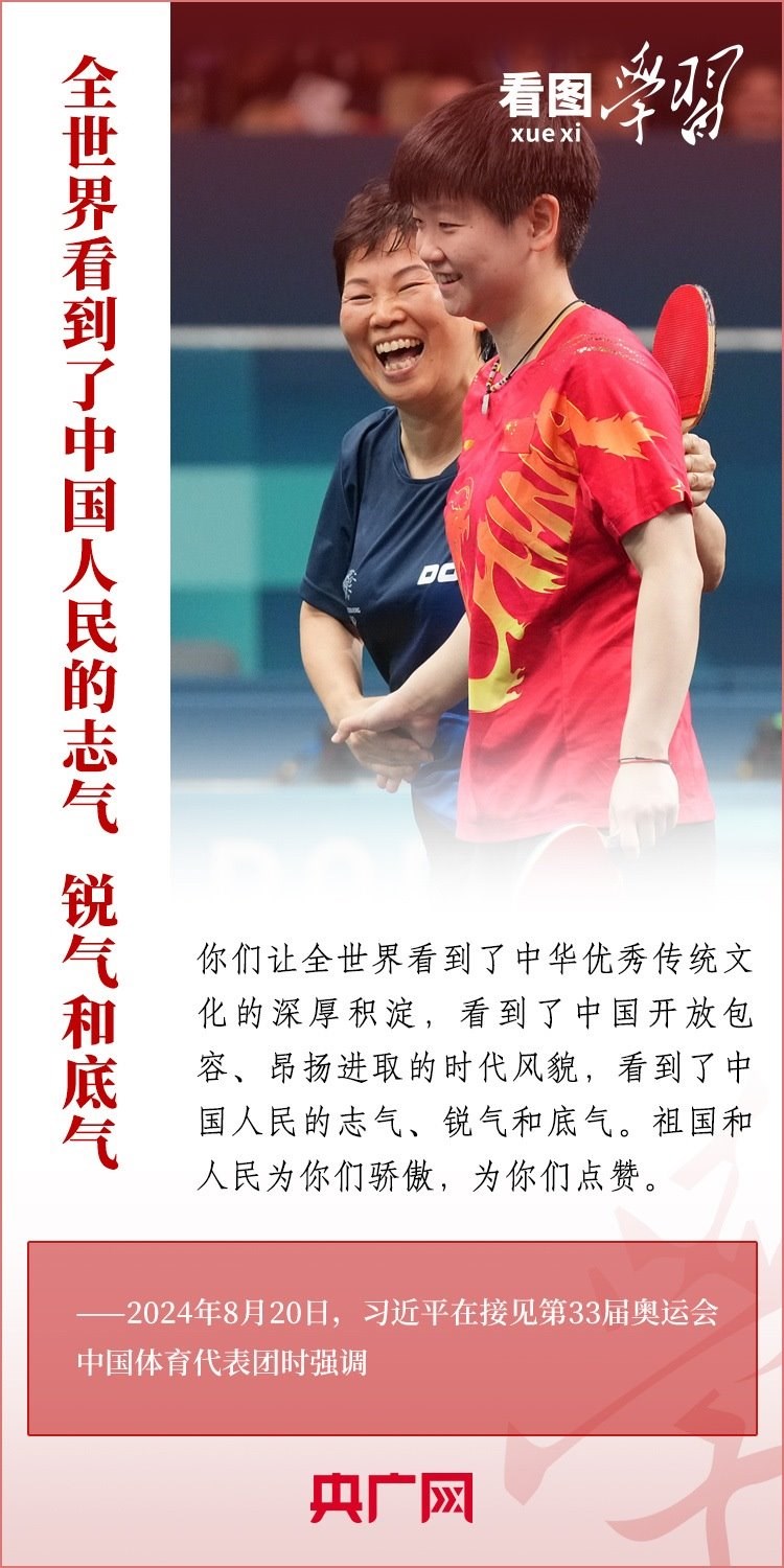 “祖國(guó)和人民為你們驕傲,為你們點(diǎn)贊?!?月20日,習(xí)近平總書記在人民大會(huì)堂接見第33屆奧運(yùn)會(huì)中國(guó)體育代表團(tuán)并發(fā)表重要講話??倳浉叨瓤隙ㄖ袊?guó)體育代表團(tuán)取得的優(yōu)異成績(jī),贊揚(yáng)他們充分彰顯了新時(shí)代中國(guó)力量、生動(dòng)詮釋了新時(shí)代中國(guó)精神、充分展現(xiàn)了新時(shí)代中國(guó)形象,勉勵(lì)大家戒驕戒躁、再接再厲,為建設(shè)體育強(qiáng)國(guó)再立新功。一起來學(xué)習(xí)!