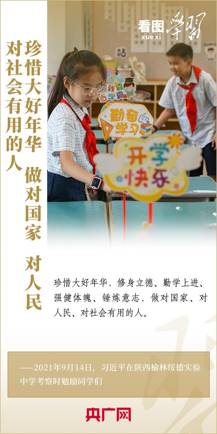“少年兒童是祖國的未來?!币恢币詠?,習(xí)近平總書記高度重視和關(guān)心青少年的健康成長。每每走到校園和學(xué)生們中間,總書記總會與他們談學(xué)習(xí)、談理想、談成長,鼓勵他們努力為自己贏得人生出彩的機(jī)會,做對國家、對人民、對社會有用的人。又是一年開學(xué)季,讓我們一起重溫總書記對莘莘學(xué)子的殷切期望。一起來學(xué)習(xí)!