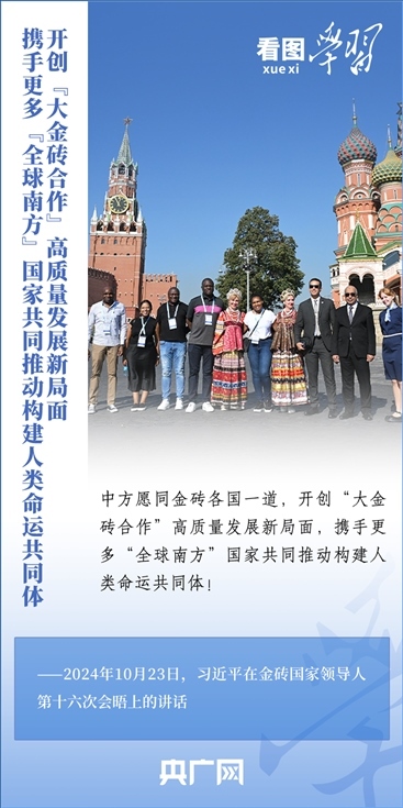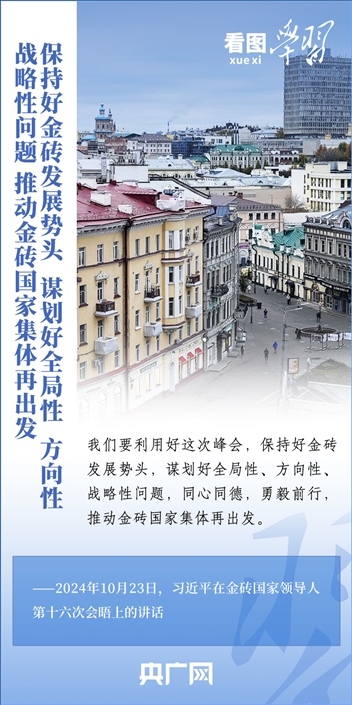 當(dāng)?shù)貢r(shí)間10月23日,國家主席習(xí)近平在俄羅斯喀山出席金磚國家領(lǐng)導(dǎo)人第十六次會晤并發(fā)表重要講話。習(xí)主席深刻闡述推動(dòng)“大金磚合作”高質(zhì)量發(fā)展的中國主張,就金磚大家庭發(fā)展合作提出五點(diǎn)務(wù)實(shí)舉措,表達(dá)了中方愿同金磚各國一道,攜手更多“全球南方”國家共同推動(dòng)構(gòu)建人類命運(yùn)共同體的真誠愿望。一起來學(xué)習(xí)!