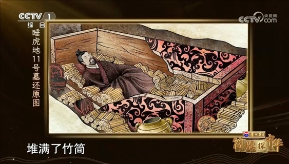 1975年底,考古學(xué)家在云夢(mèng)縣睡虎地發(fā)掘出12座戰(zhàn)國(guó)晚期至秦代的墓葬。隨著11號(hào)秦墓的開(kāi)啟,人們驚奇地看見(jiàn),千余片竹簡(jiǎn)層層疊壓,有序擺放在墓主人周?chē)?,竹?jiǎn)上的字跡清晰可見(jiàn),這是中國(guó)考古史上首次發(fā)現(xiàn)的秦簡(jiǎn)。