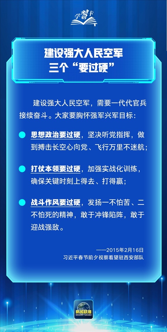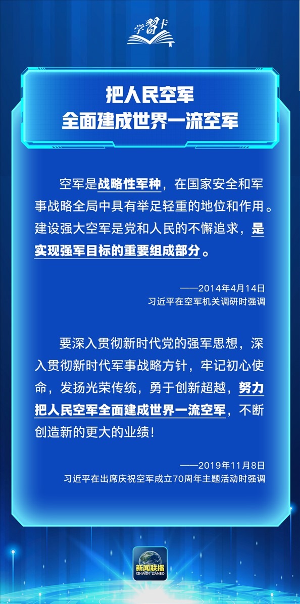 2024年11月11日,是中國人民解放軍空軍成立75周年紀念日。在黨的堅強領(lǐng)導(dǎo)下,一代代空軍官兵胸懷凌云壯志,搏擊萬里長空,推動空軍建設(shè)取得舉世矚目的成就,為維護國家主權(quán)、安全、發(fā)展利益建立了不朽功勛。如何把人民空軍全面建成世界一流空軍?一起學(xué)習(xí)↓