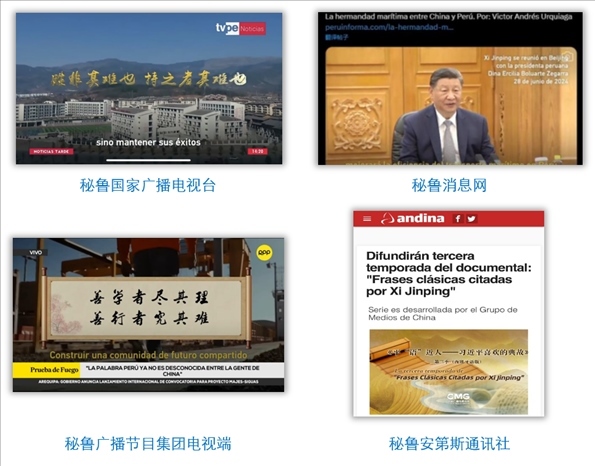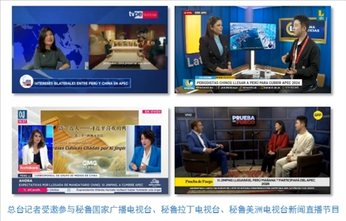 中央廣播電視總臺(tái)記者受邀參與秘魯國(guó)家廣播電視臺(tái)、秘魯拉丁電視臺(tái)和當(dāng)?shù)厥找暵首罡叩拿佤斆乐揠娨暸_(tái)新聞直播節(jié)目,介紹《平“語(yǔ)”近人——習(xí)近平喜歡的典故》第三季(西班牙語(yǔ)版)內(nèi)容,帶領(lǐng)當(dāng)?shù)厥鼙姼形蛄?xí)近平主席用典中蘊(yùn)含的中國(guó)智慧。