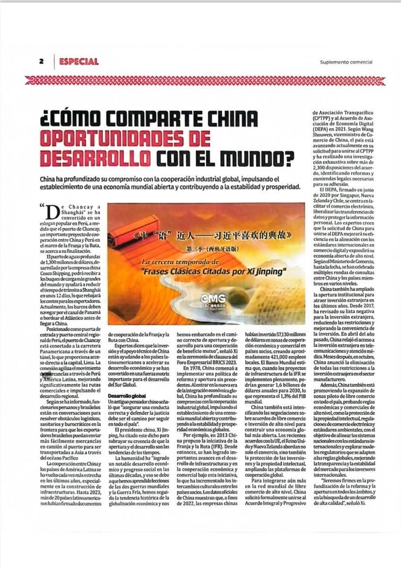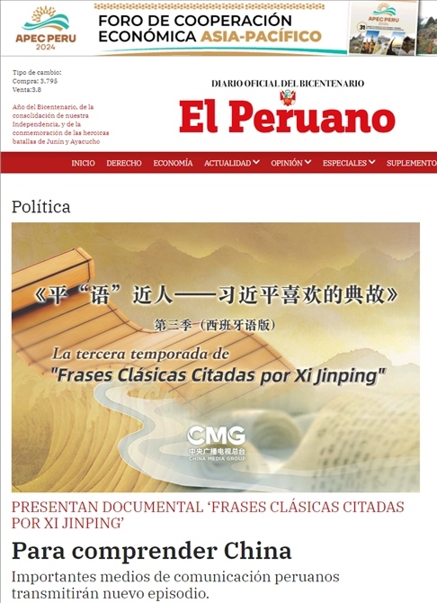 △《秘魯人報(bào)》刊發(fā)文章《<平“語(yǔ)”近人>專題片播出 更好地了解中國(guó)——秘魯各大媒體播出新一季片集》