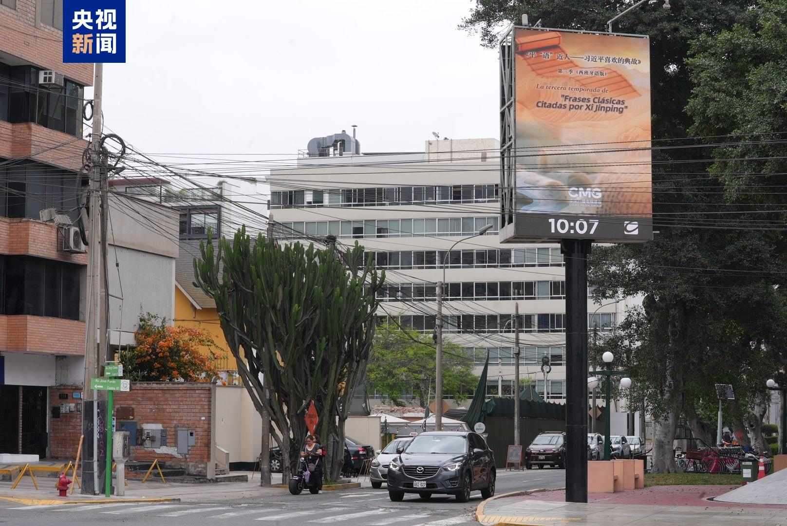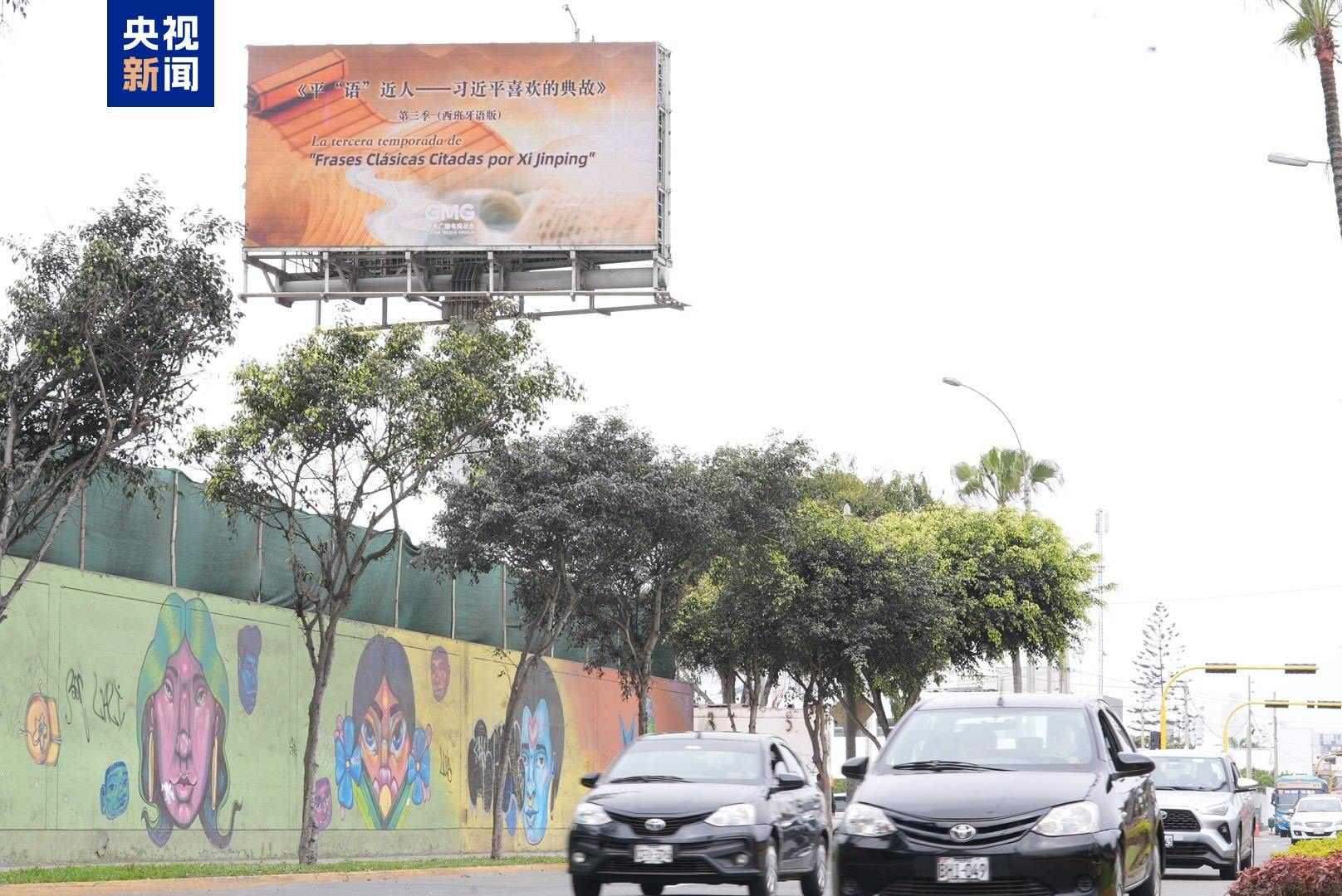 11月14日起,《平“語(yǔ)”近人——習(xí)近平喜歡的典故》第三季(西班牙語(yǔ)版)宣傳片在利馬地標(biāo)建筑戶外大屏、利馬國(guó)際機(jī)場(chǎng)至市中心沿路戶外大屏滾動(dòng)播放。秘魯各界人士對(duì)節(jié)目落地播出表示期待,認(rèn)為這將為秘魯民眾了解中國(guó)領(lǐng)導(dǎo)人治國(guó)理政思想、領(lǐng)略中國(guó)式現(xiàn)代化的壯美宏闊打開(kāi)思想之窗。