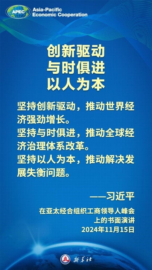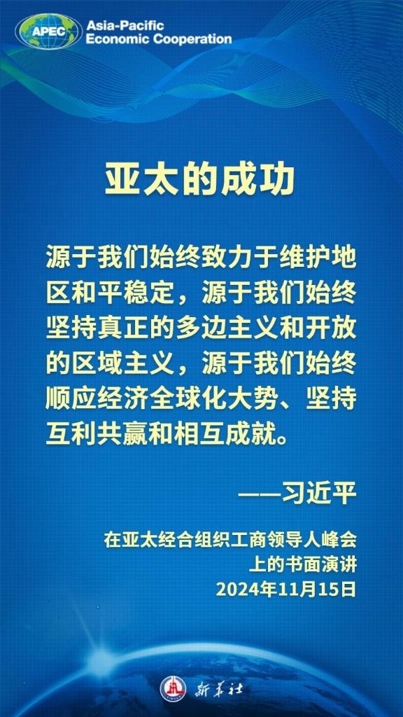 當?shù)貢r間11月15日上午,國家主席習近平向在利馬舉行的亞太經(jīng)合組織工商領導人峰會發(fā)表題為《把握時代大勢 共促世界繁榮》的書面演講,這樣闡述亞太合作——