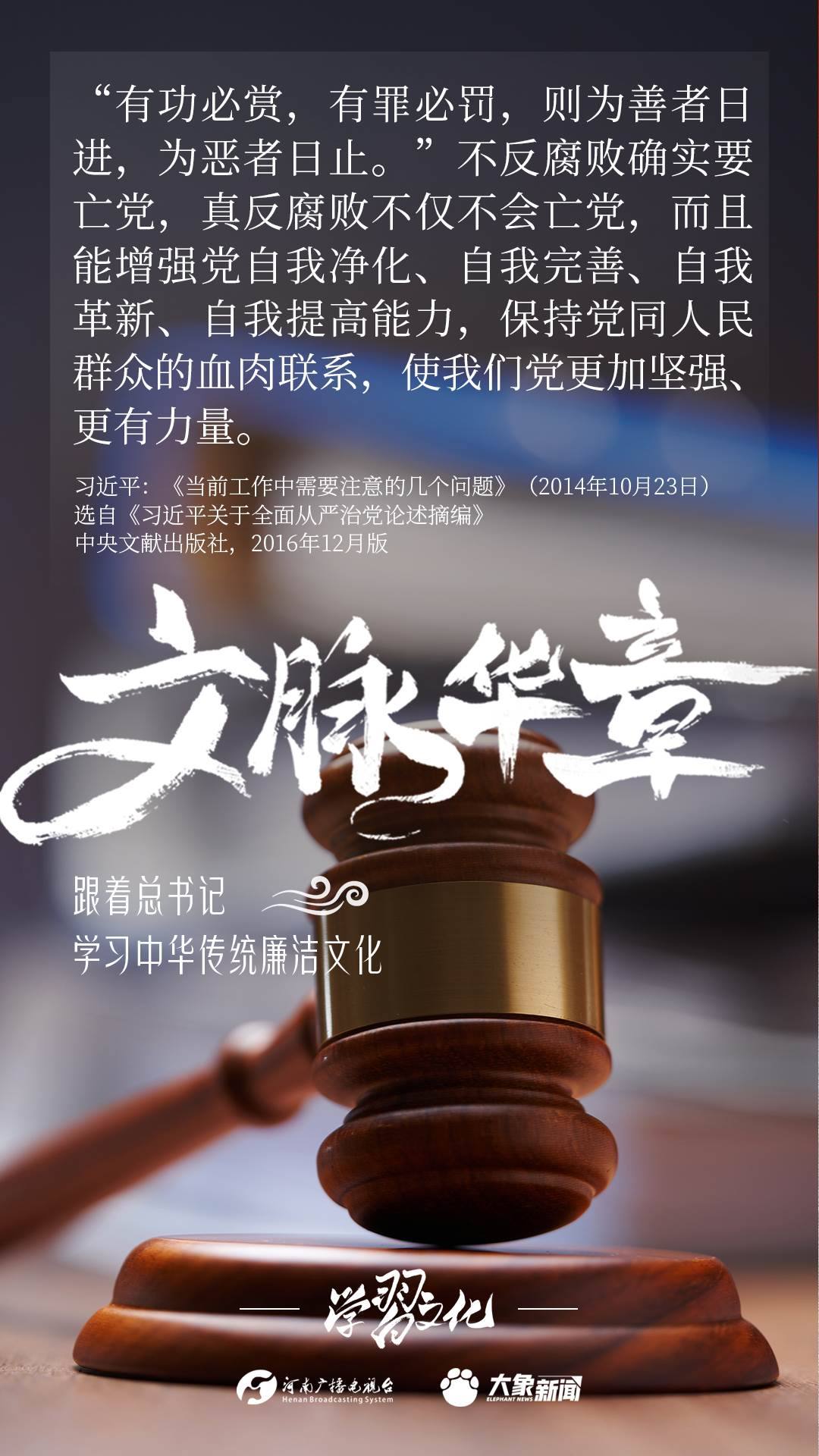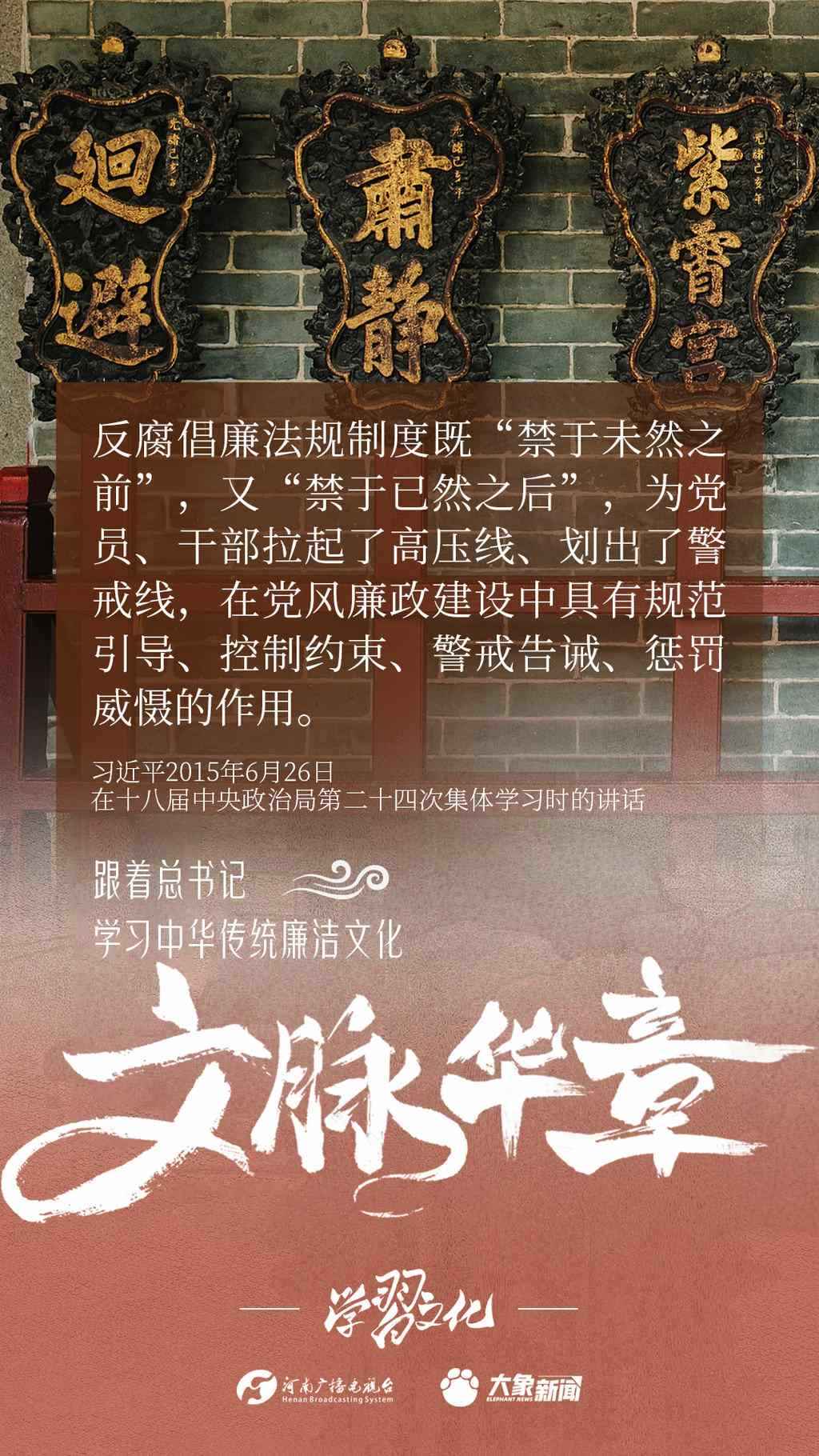 中華優(yōu)秀傳統(tǒng)文化蘊含著豐富的廉潔文化,習(xí)近平總書記曾指出:沒有中華優(yōu)秀傳統(tǒng)文化、革命文化、社會主義先進文化的底蘊和滋養(yǎng),信仰信念就難以深沉而執(zhí)著。總書記常常引經(jīng)據(jù)典,教育引導(dǎo)廣大黨員干部正心修身,涵養(yǎng)文化,守住為政之本。大象新聞分五期為您梳理,我們一起跟著總書記學(xué)習(xí)中華傳統(tǒng)廉潔文化。今天推出第四期。