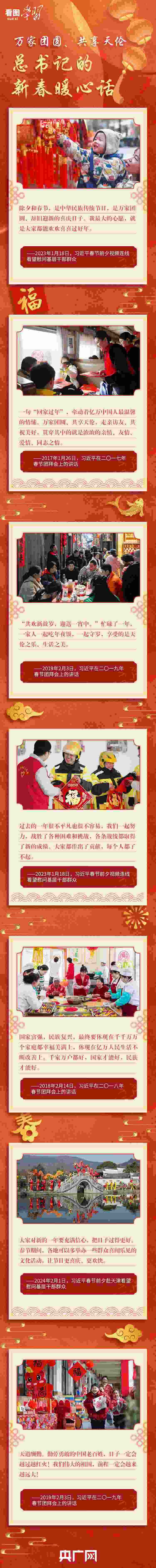“共歡新故歲,迎送一宵中。”作為中華民族的傳統(tǒng)節(jié)日,除夕和春節(jié)是萬(wàn)家團(tuán)圓、辭舊迎新最重要的日子。每年春節(jié)前夕,習(xí)近平總書記都要看望慰問(wèn)各地基層干部群眾,向全國(guó)各族人民送上新春祝福。