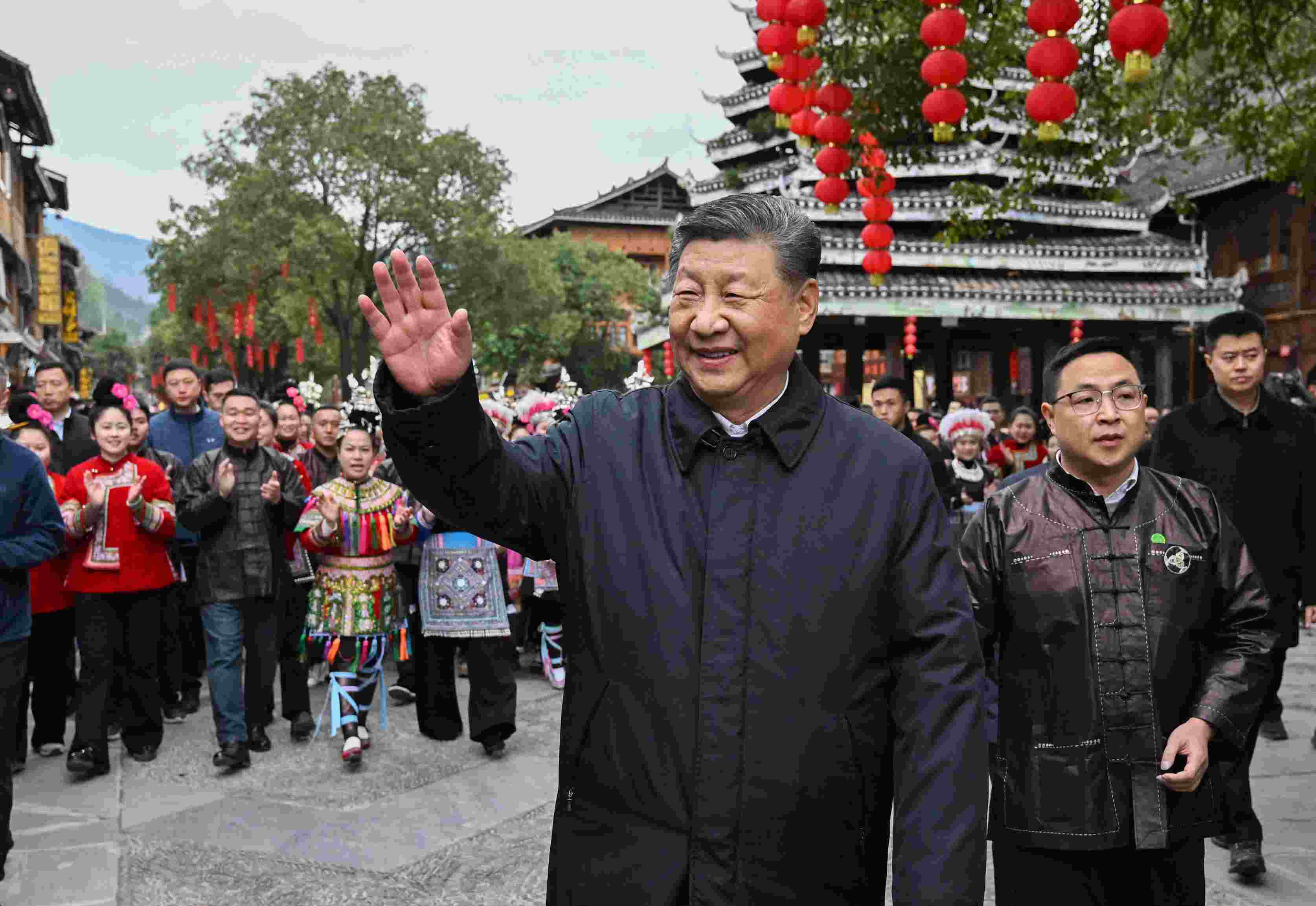 17日下午,習(xí)近平總書記在貴州省黔東南苗族侗族自治州考察了黎平縣肇興侗寨,了解當(dāng)?shù)丶訌?qiáng)基層黨組織建設(shè)和社會治理、保護(hù)傳承民族傳統(tǒng)文化、推進(jìn)鄉(xiāng)村全面振興等情況。