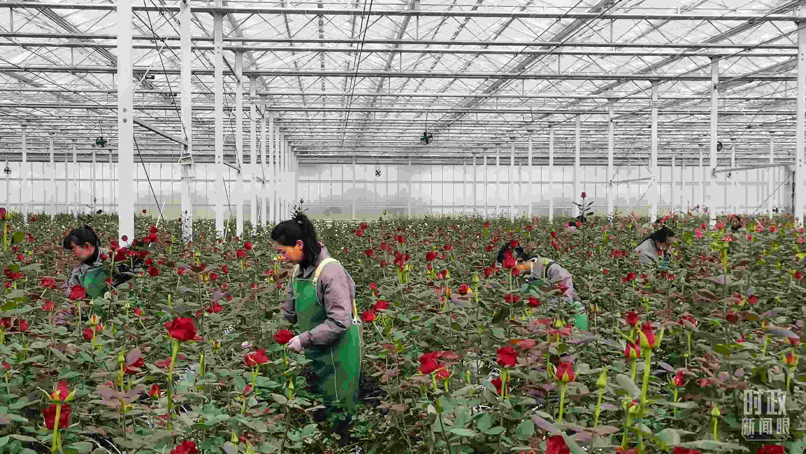 △產(chǎn)業(yè)園的智能溫室大棚里,花開(kāi)正艷。(總臺(tái)央視記者范一鳴拍攝)