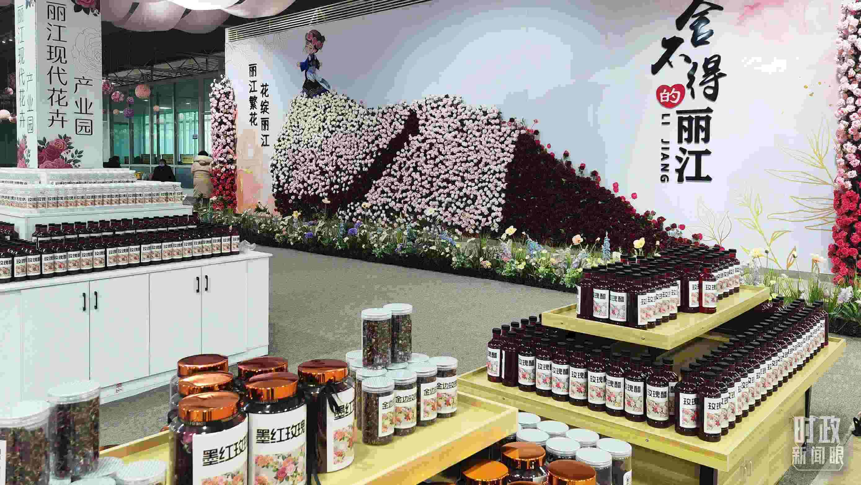△展廳里展示的各種鮮花制品。(總臺(tái)央廣記者馬喆拍攝)