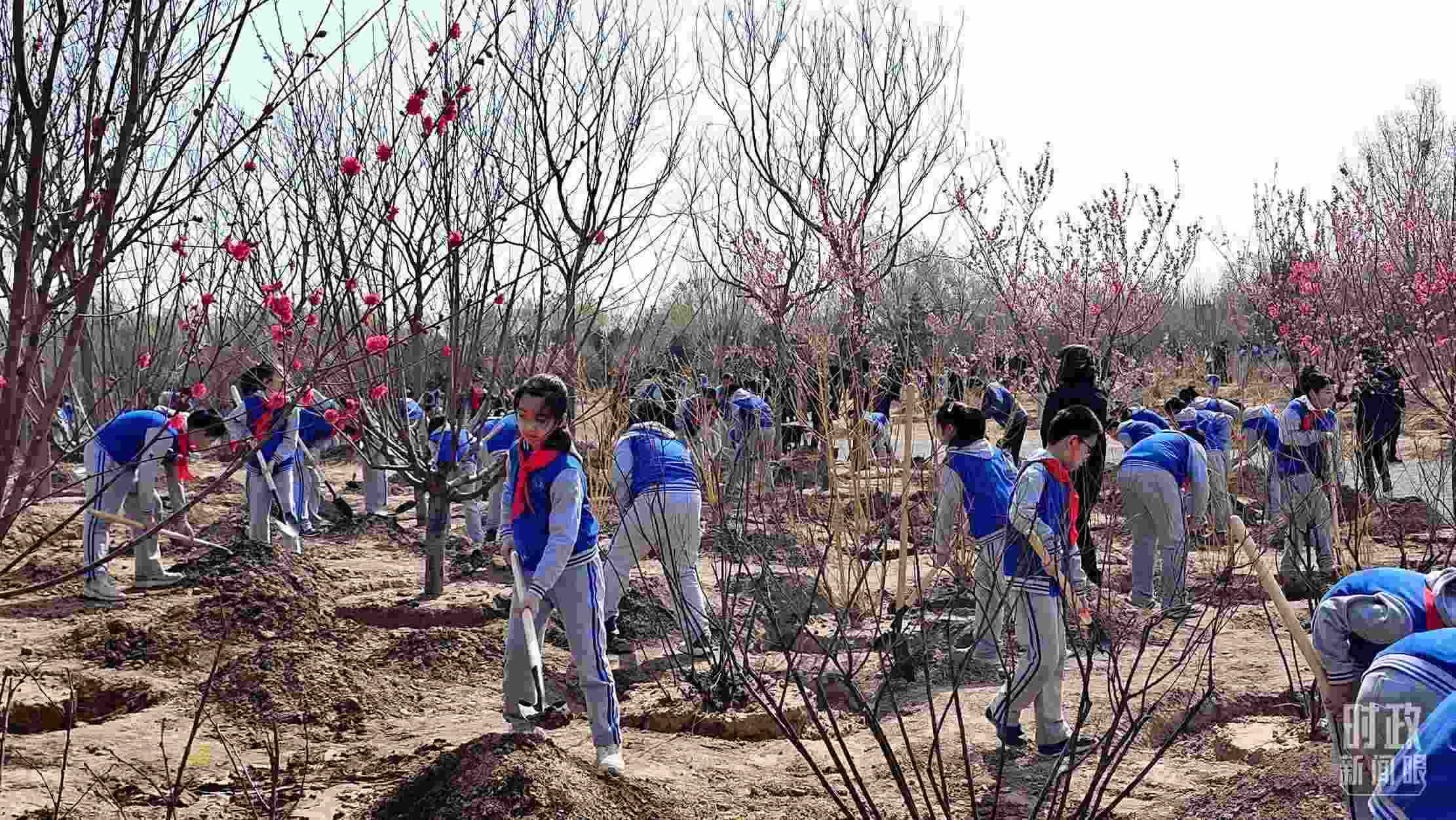 △永定河畔植樹點,春意上枝頭。(總臺央視記者胡瑋、程鋮拍攝)