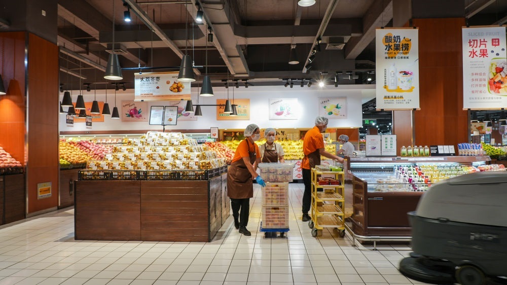 在河南許昌的胖東來生活廣場店內(nèi),店員正在做當(dāng)天開業(yè)前的準備工作。新華社記者 劉振坤 攝