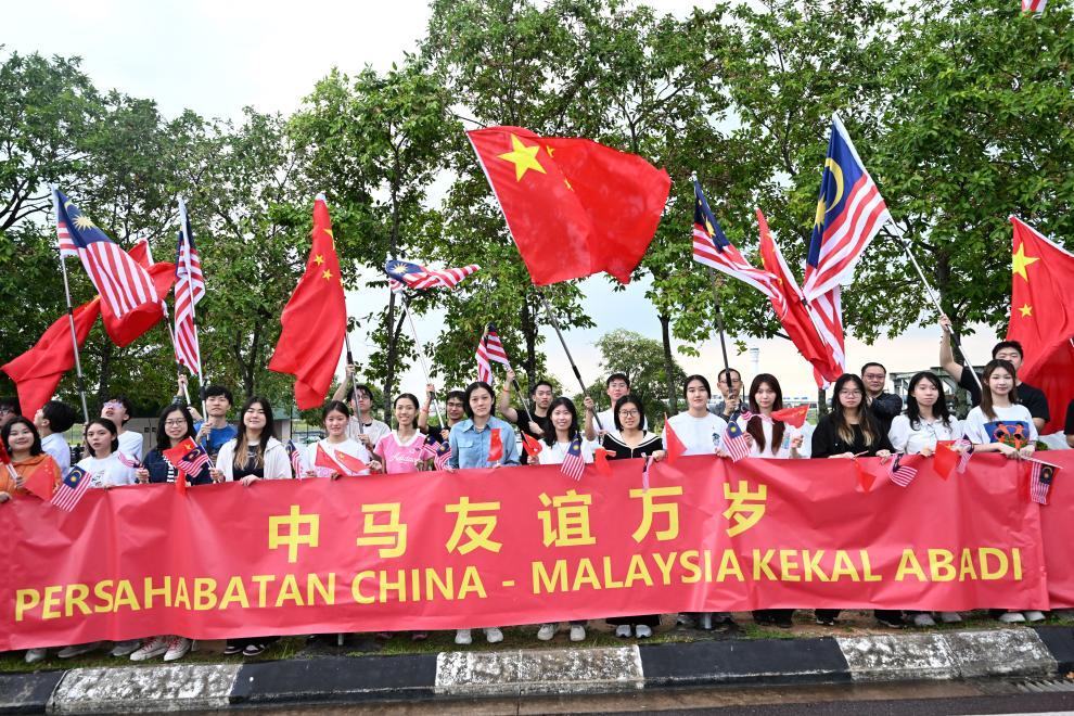 習(xí)近平乘車從機(jī)場(chǎng)赴下榻飯店途中,當(dāng)?shù)刂匈Y企業(yè)人員、留學(xué)生在道路兩旁揮舞中馬兩國(guó)國(guó)旗,高舉“熱烈歡迎習(xí)近平主席訪問馬來(lái)西亞”、“中馬友誼萬(wàn)歲”等紅色橫幅,華僑華人表演喜慶熱烈的舞獅,歡迎習(xí)近平到訪。