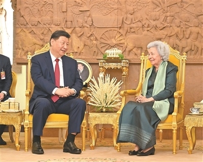 本報(bào)金邊4月17日電 (記者王玉琳、包晗)4月17日晚,國(guó)家主席習(xí)近平同柬埔寨太后莫尼列在金邊王宮舉行會(huì)見(jiàn)。