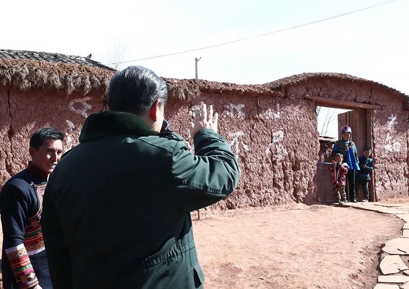2018年2月11日上午,習(xí)近平在涼山彝族自治州昭覺縣三岔河鄉(xiāng)三河村考察時(shí)同村民打招呼。 新華社記者 鞠鵬 攝