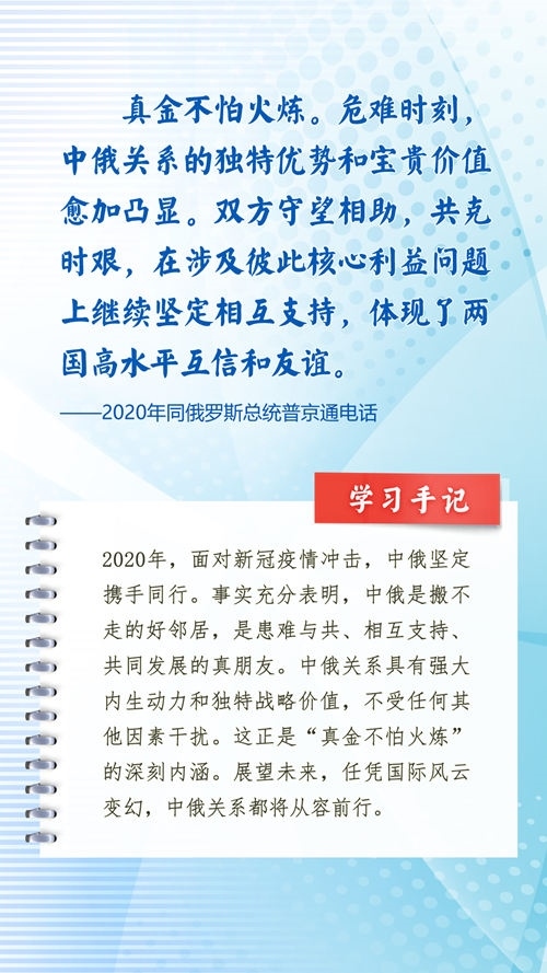 我們一起來學(xué)習(xí)品讀這些飽含哲思的論述,從中感悟新時代中俄關(guān)系在復(fù)雜的外部環(huán)境下堅毅前行之道,感悟習(xí)近平主席作為大黨大國領(lǐng)袖、世界級領(lǐng)袖的時代擔(dān)當(dāng)與天下情懷。