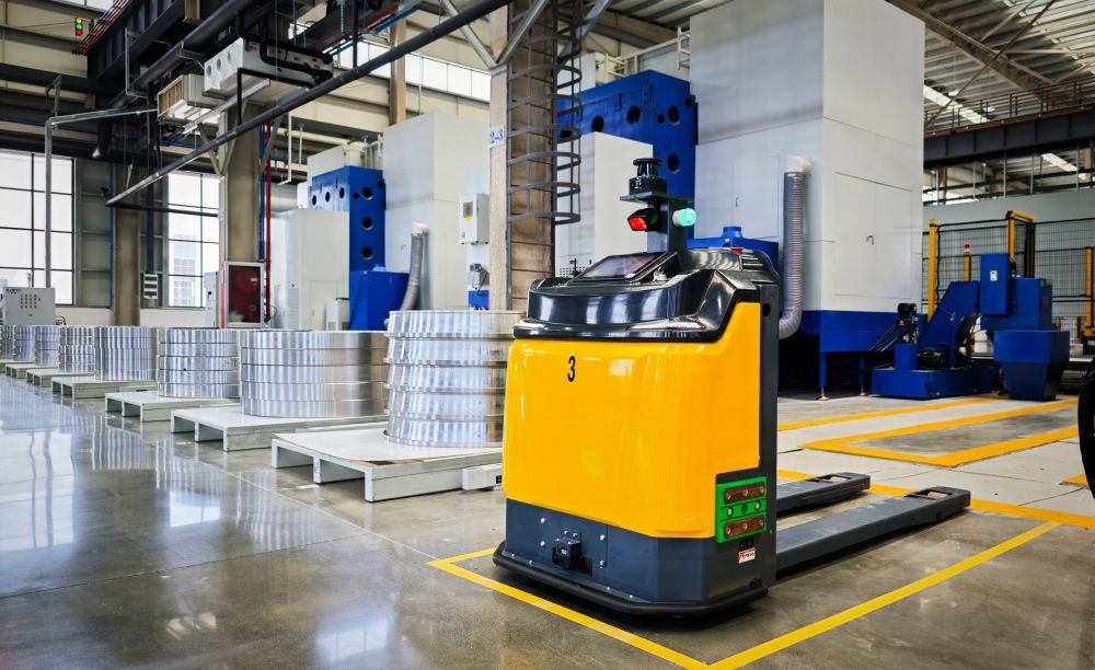 2025年5月19日在洛軸智能工廠拍攝的自動導(dǎo)向運(yùn)輸車(AGV)。