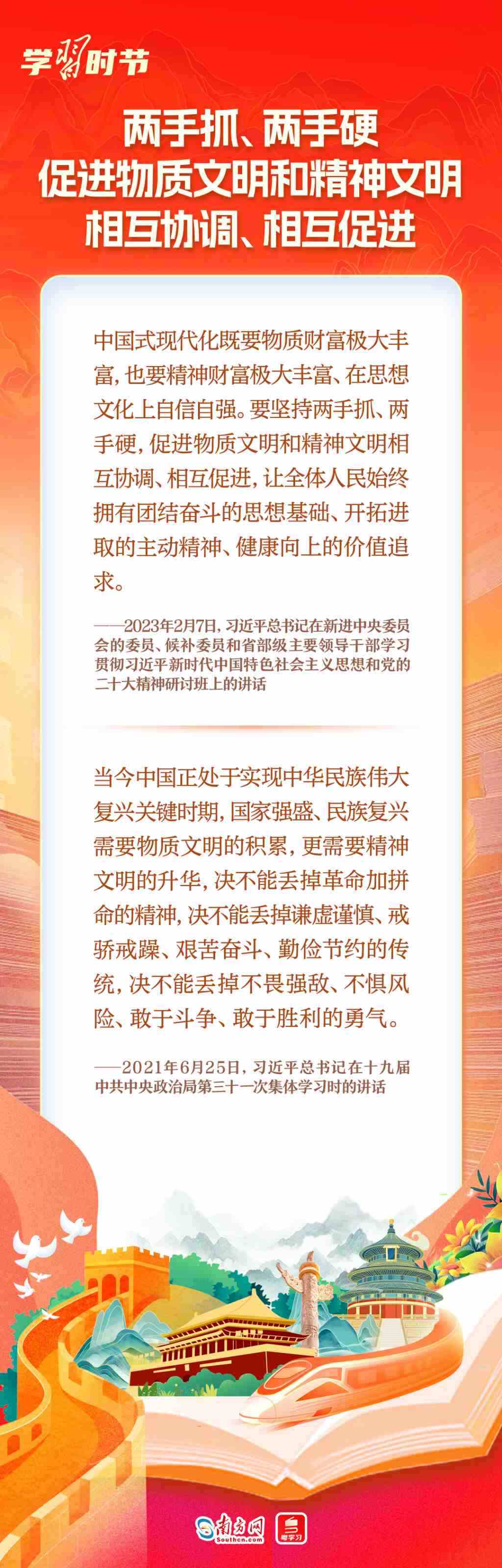 黨的十八大以來,黨中央持續(xù)推進(jìn)社會(huì)主義精神文明建設(shè),鞏固壯大社會(huì)主流價(jià)值,全民族精神面貌更加奮發(fā)昂揚(yáng),人民文明素養(yǎng)和社會(huì)文明程度顯著提升。習(xí)近平總書記高度重視社會(huì)主義精神文明建設(shè),近年來在不同場合就精神文明建設(shè)發(fā)表了一系列重要論述,為改進(jìn)創(chuàng)新精神文明建設(shè)工作、豐富人民群眾精神文化生活指明了方向、提供了遵循。我們整理了相關(guān)論述,與您繼續(xù)深入學(xué)習(xí)領(lǐng)會(huì)。