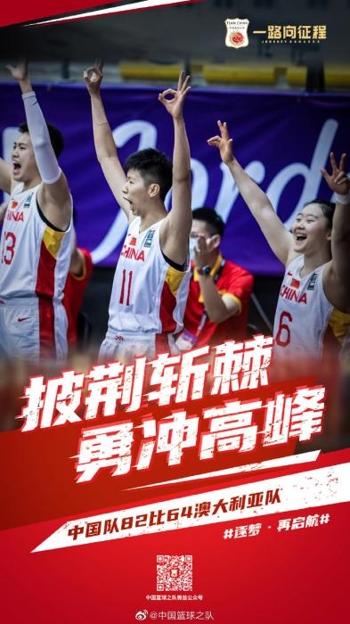 中新網(wǎng)客戶端北京9月30日電 北京時間29日晚,2021年女籃亞洲杯在約旦首都安曼結束了小組賽階段的爭奪,中國女籃在小組賽末輪比賽中以82:64擊敗勁敵澳大利亞隊,晉級四強。