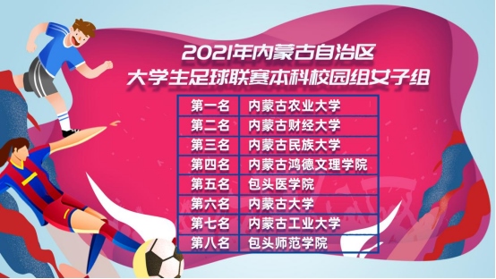 近年來,內(nèi)蒙古校園足球蓬勃發(fā)展,多彩的校園足球賽事與活動(dòng)呈現(xiàn)出不斷發(fā)展的生機(jī)與活力。作為全區(qū)舉辦規(guī)模最大、參賽人數(shù)最多、覆蓋面最廣、專為大學(xué)生量身打造的校園足球賽事,大學(xué)生足球聯(lián)賽成為我區(qū)各高校學(xué)子充分展示青春活力與頑強(qiáng)斗志的重要舞臺(tái)。2021年聯(lián)賽中,共設(shè)高職校園、高職超級(jí)、本科校園和本科超級(jí)組(男、女)共7個(gè)組別。錫林郭勒職業(yè)學(xué)院、包頭輕工職業(yè)技術(shù)學(xué)院、呼和浩特民族學(xué)院分別獲得高職校園男子組、女子組、超級(jí)男子組冠軍;內(nèi)蒙古農(nóng)業(yè)大學(xué)奪得本科校園男子、女子組冠軍;內(nèi)蒙古科技大學(xué)、內(nèi)蒙古大學(xué)分別奪得本科超級(jí)組男子、女子組冠軍。
