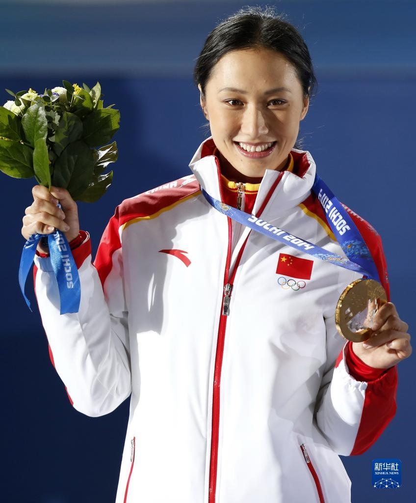 2014年2月14日,張虹在俄羅斯索契冬奧會(huì)速度滑冰女子1000米比賽頒獎(jiǎng)儀式上。新華社記者王麗莉攝