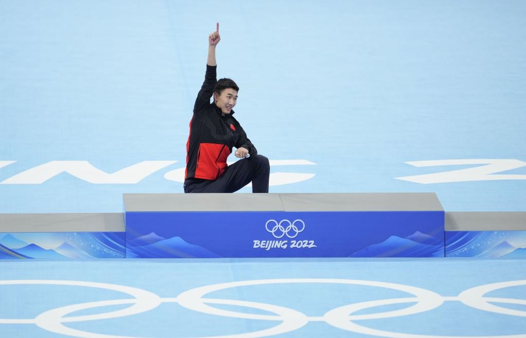 高亭宇比出“第一”的手勢(shì),咧嘴笑了。他高舉五星紅旗環(huán)繞全場(chǎng),朝觀眾席大喊了一聲,宣泄心中的激情?!拔覑勰阒袊?,親愛的母親……”音樂響起,亮麗的中國紅在“冰絲帶”飄揚(yáng)。