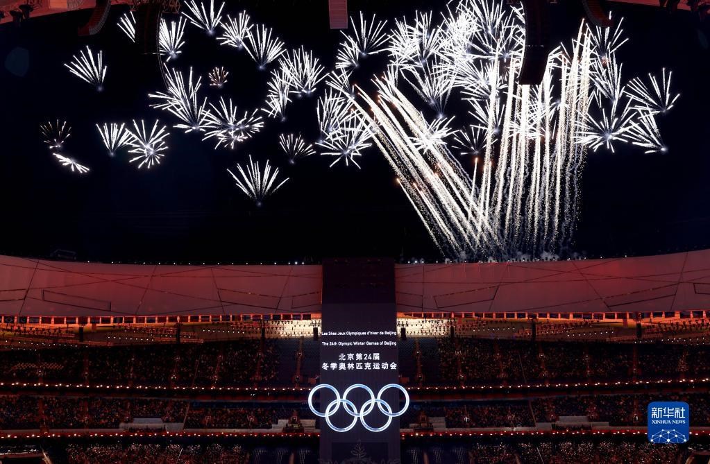 2月4日,開幕煙花在鳥巢上空綻放。當日,第24屆冬季奧運會開幕式在北京舉行。新華社記者陳建力攝