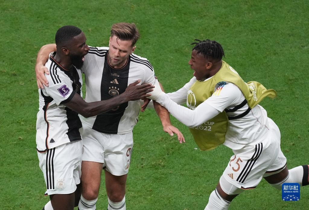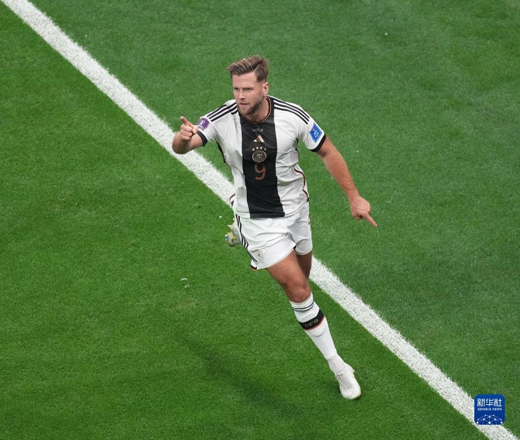 11月27日,德國(guó)隊(duì)球員尼克拉斯·菲爾克魯格在比賽中進(jìn)球后慶祝。新華社記者 陳誠(chéng) 攝
