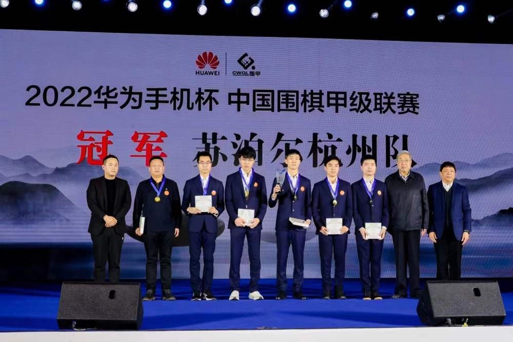 蘇泊爾杭州隊在2022華為手機杯中國圍棋甲級聯(lián)賽頒獎儀式上。
