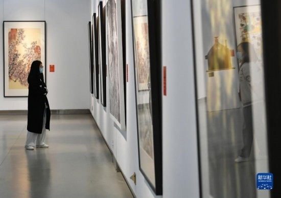 4月6日,觀眾在長(zhǎng)安畫(huà)派藝術(shù)中心觀賞美術(shù)作品。
