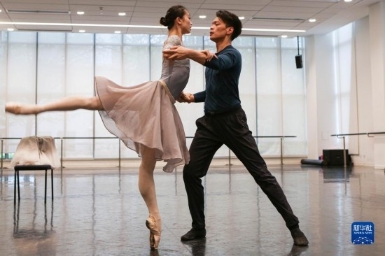 4月13日,上海芭蕾舞團(tuán)副團(tuán)長(zhǎng)、首席主要演員吳虎生和主要演員戚冰雪在排練芭蕾舞劇《歌劇魅影》。