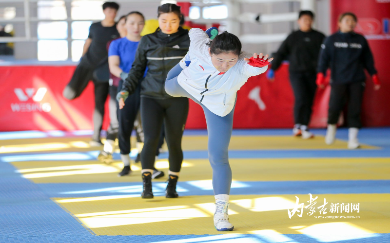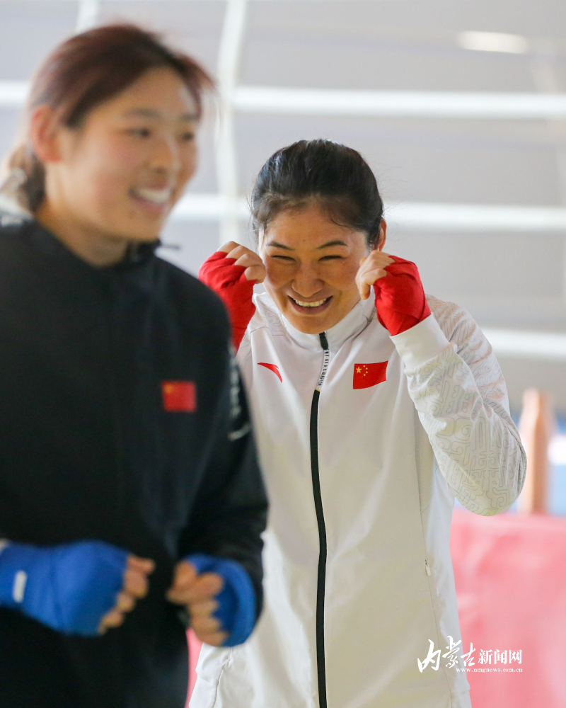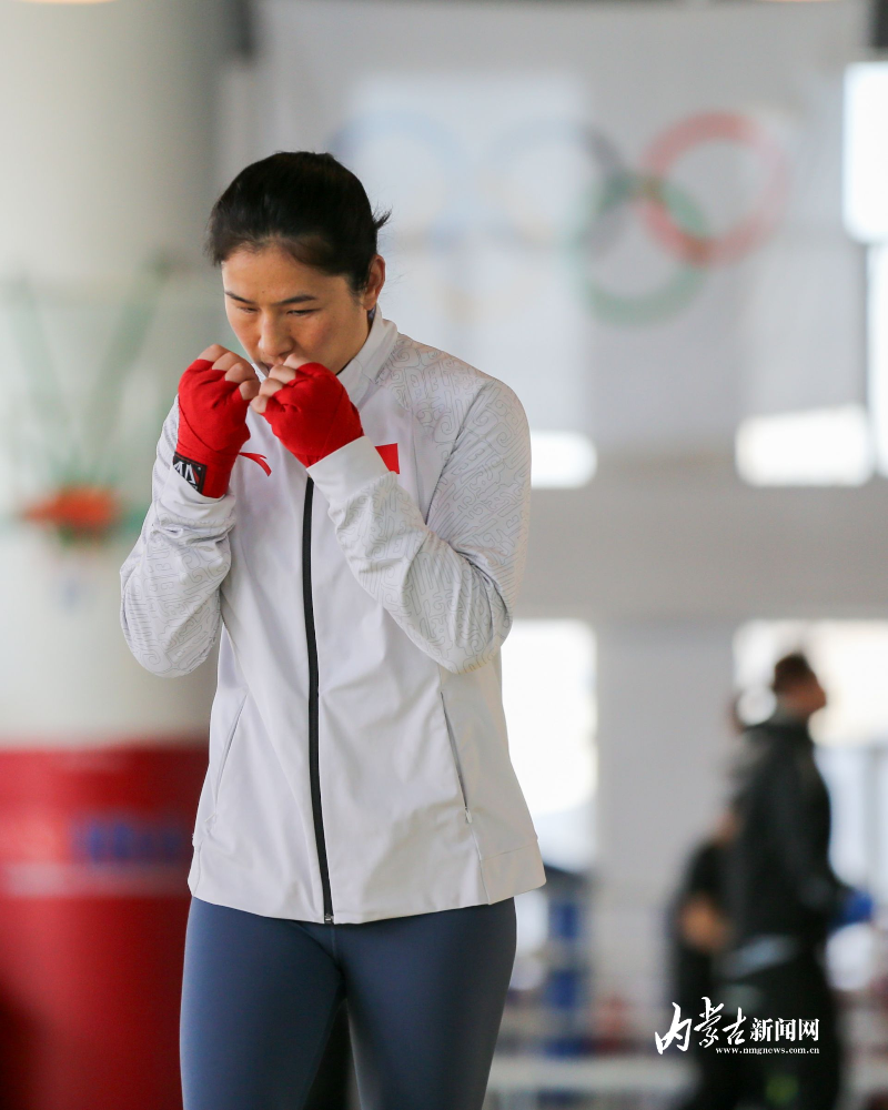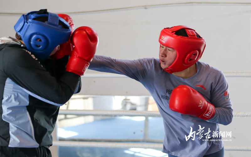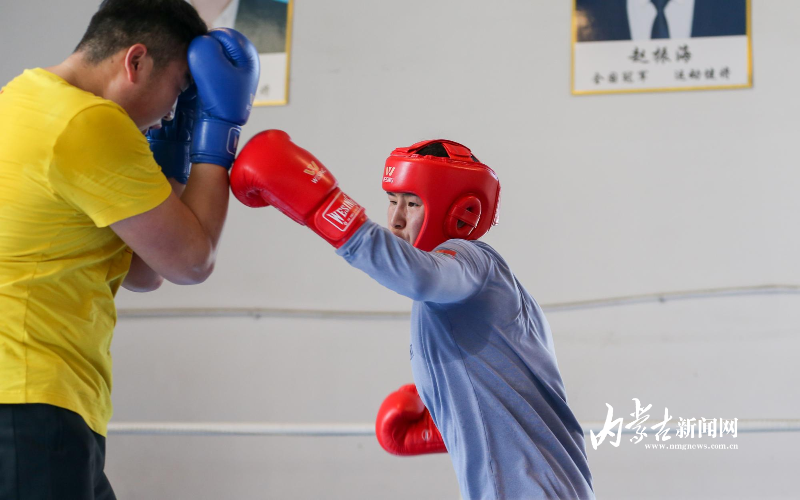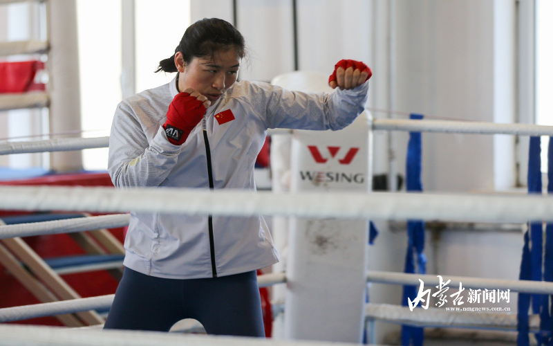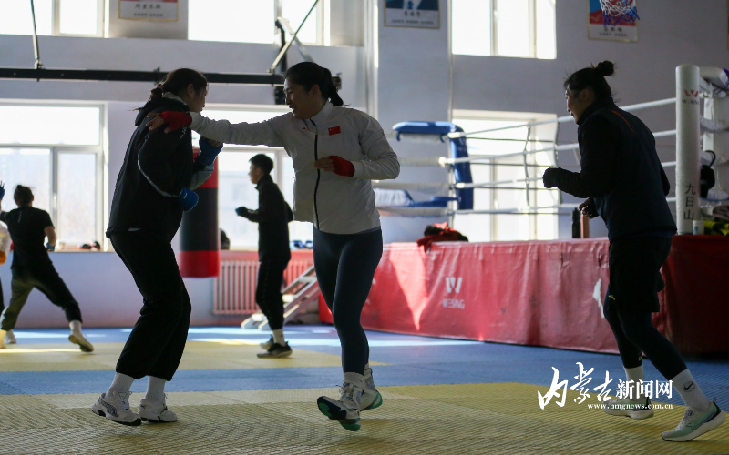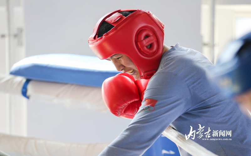 當(dāng)日,記者在拳擊館內(nèi)看到,在訓(xùn)練中李倩腳步輕盈,汗珠在額頭滑落。她戴上拳套,走向沙袋,一記記重拳砸出,發(fā)出沉悶的“砰”聲。內(nèi)蒙古女子拳擊隊(duì)的數(shù)十名拳手正在同時(shí)訓(xùn)練,沙袋晃動(dòng),呼吸急促,空氣中彌漫著汗水與堅(jiān)持的味道?!胺朗?,腳下要穩(wěn)!”內(nèi)蒙古拳擊隊(duì)總教練哈達(dá)巴特爾的聲音在空間回蕩。李倩的訓(xùn)練格外嚴(yán)格。除了常規(guī)力量訓(xùn)練、反應(yīng)訓(xùn)練和體能循環(huán),她還要進(jìn)行一對(duì)一的與男拳手的實(shí)戰(zhàn)模擬,幾次交鋒下來(lái),氣息都愈發(fā)急促。但李倩沒(méi)有退縮,反而越打越穩(wěn),腳步靈活,出拳干凈利落。