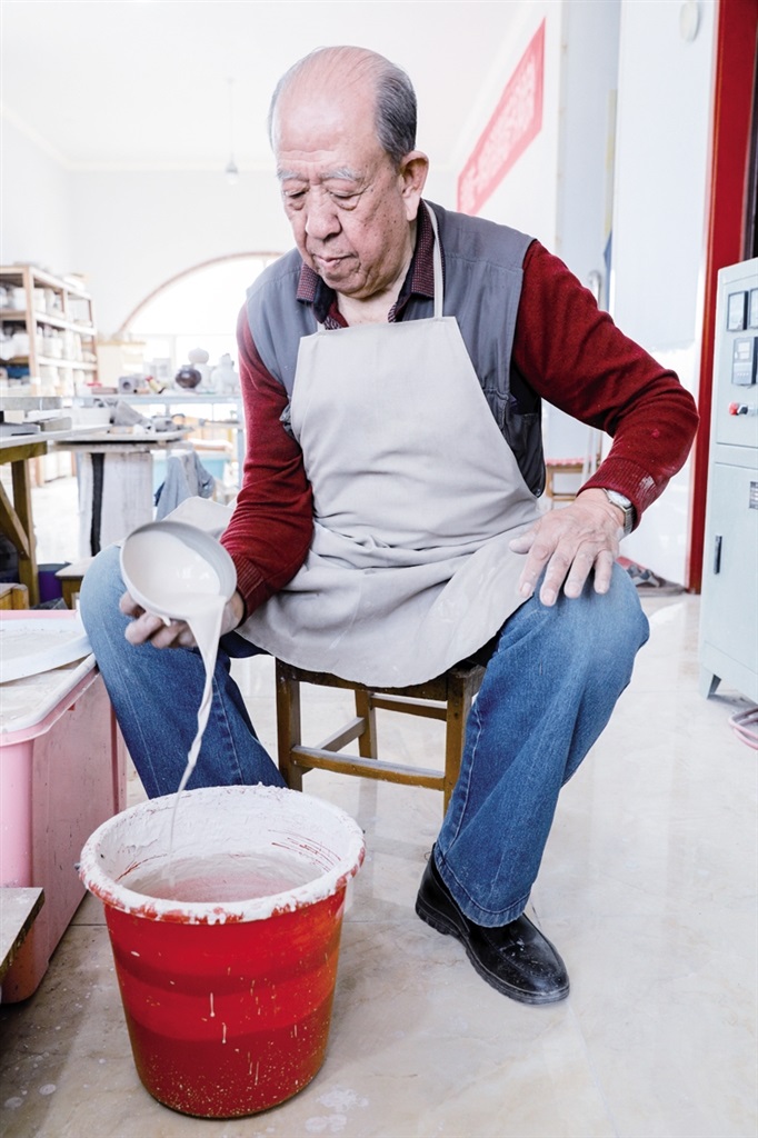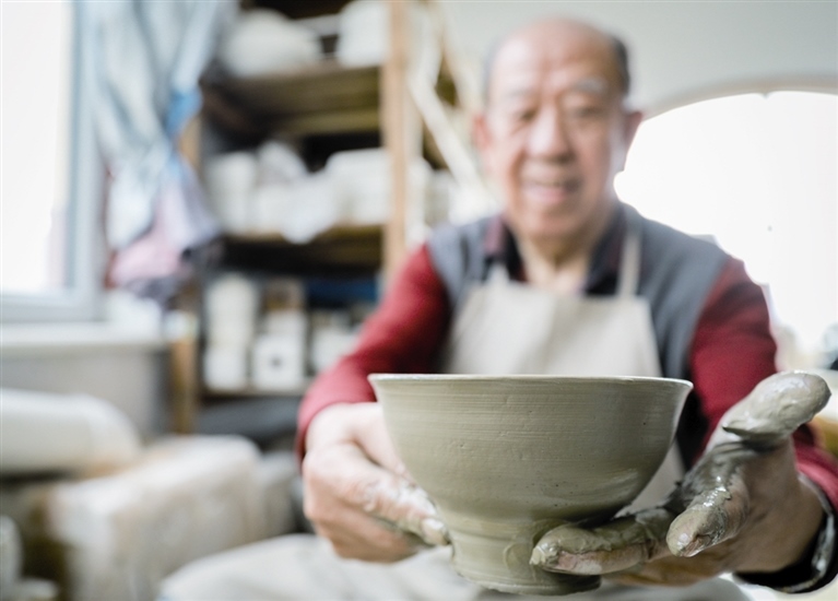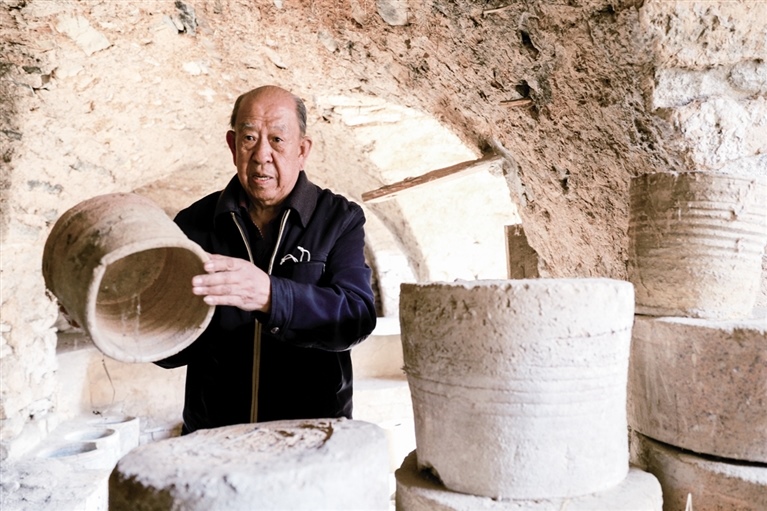 隨后,他走進(jìn)“饅頭窯”旁邊的一口窯洞,這是當(dāng)時(shí)張家的一間手工作坊,揉泥、拉坯、上釉等一系列制作陶瓷的工序都是在這里完成?!拔揖统錾谶@個(gè)村子,已經(jīng)是張家瓷藝的第九代傳人了。作為中國(guó)磁州窯譜系,清水河黑礬溝瓷藝生產(chǎn)歷史至少已有800年。”關(guān)于這項(xiàng)非遺的歷史故事,張選老人向記者娓娓道來(lái):大約400年前,他們張家走西口從山西來(lái)到清水河謀生,當(dāng)時(shí)清水河黑礬溝有一家姓杜的人家做陶瓷營(yíng)生,張家的先人在杜家打工,大概這樣打工做了三輩人吧,杜家忽然不做了,搬離了黑礬溝,他們張家便把杜家的產(chǎn)業(yè)買(mǎi)了下來(lái)繼續(xù)做?!澳莻€(gè)時(shí)候黑礬溝生產(chǎn)的瓷器都與人們生活息息相關(guān),比如腌菜缸、水甕、碗盤(pán)等,一個(gè)家庭手工作坊一天能生產(chǎn)500個(gè)碗呢,生意很好,人們靠做這個(gè)營(yíng)生也過(guò)上了不錯(cuò)的生活?!睆堖x回憶著清水河瓷藝鼎盛時(shí)期的場(chǎng)景。上個(gè)世紀(jì)70年代,由于交通、技術(shù)等原因,黑礬溝燃燒了幾百年的窯火熄滅,傳統(tǒng)“饅頭窯”被正式廢棄,轉(zhuǎn)移到窯溝鄉(xiāng)后手工作坊變成了機(jī)械化生產(chǎn),這也讓清水河的陶瓷名聲大噪。當(dāng)時(shí),在窯溝鄉(xiāng)一帶,從事陶瓷生產(chǎn)的有近萬(wàn)人,陶瓷業(yè)成為清水河支柱產(chǎn)業(yè)。