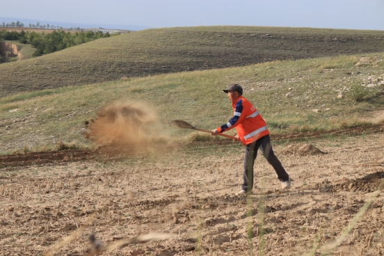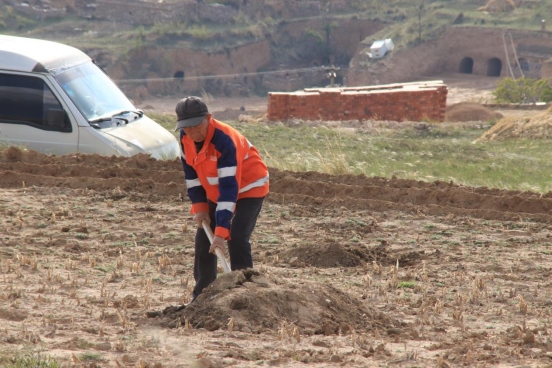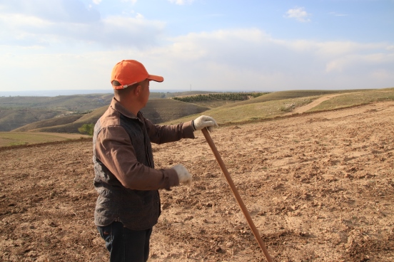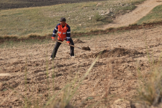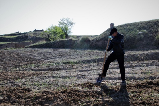 邊墻壕村是個(gè)小村莊,在村口遇見一對(duì)夫婦正在播種,據(jù)介紹全村現(xiàn)有20多戶人家四五十口人,年輕人都出去打工了,剩下些村民老人居多。讓我們再次把鏡頭對(duì)準(zhǔn)邊墻下春播的百姓。