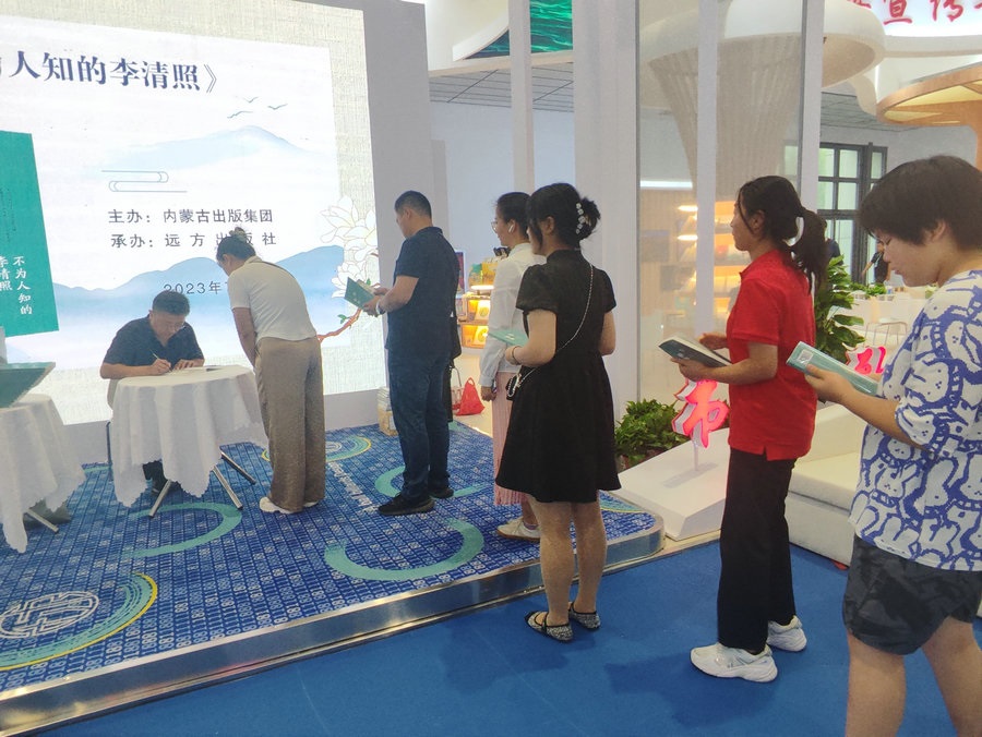 四面荷花三面柳,一城山色半城湖。7月27日,如詩(shī)如畫(huà)的泉城濟(jì)南,第31屆全國(guó)圖書(shū)交易博覽會(huì)內(nèi)蒙古展區(qū)中,張晉閣講述《不為人知的李清照》活動(dòng)圓滿舉辦。此次活動(dòng)由內(nèi)蒙古出版集團(tuán)主辦,遠(yuǎn)方出版社承辦。遠(yuǎn)方出版社社長(zhǎng)蘇那嘎、總編輯孟慶微,內(nèi)蒙古教育出版社總編輯張其其格,數(shù)傳集團(tuán)副總裁陸歡,《不為人知的李清照》作者張晉閣先生和現(xiàn)場(chǎng)的眾多讀者朋友們共同參與了活動(dòng)。