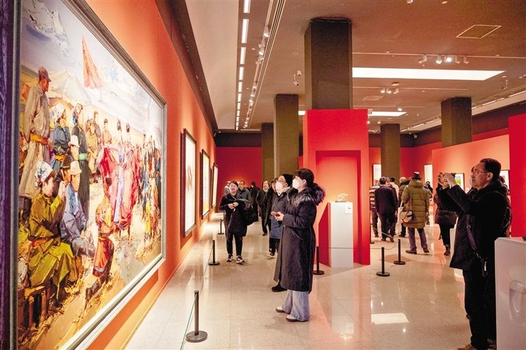 12月30日,元旦假期第一天,中國(guó)美術(shù)館內(nèi)“蒙古馬精神——內(nèi)蒙古美術(shù)攝影作品展”前來(lái)觀展的觀眾絡(luò)繹不絕。展出的130多件藝術(shù)作品生動(dòng)反映了內(nèi)蒙古各族人民牢記囑托、感恩奮進(jìn),努力完成習(xí)近平總書(shū)記交給內(nèi)蒙古的五大任務(wù)和全方位建設(shè)模范自治區(qū)的火熱實(shí)踐,全面展示了內(nèi)蒙古壯美和美善美、可信可親可愛(ài)的新時(shí)代形象。