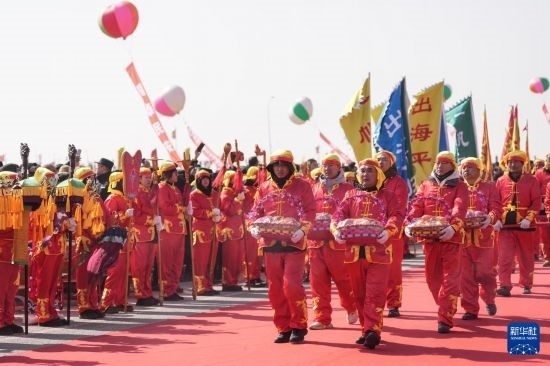 當日,遼寧省盤錦市舉辦盤錦首屆漁雁文化節(jié)暨第六屆二界溝開海節(jié)。活動中漁家祭祀、非遺秧歌、舞獅等演出再現(xiàn)當?shù)貪O雁文化,漁民也通過這樣的形式表達盼望新一年漁業(yè)豐收的美好愿望。
