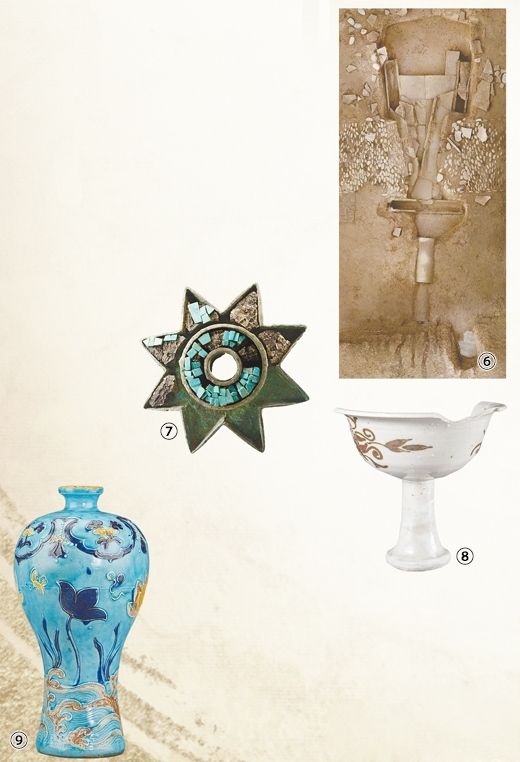 圖⑨:南海西北陸坡一號(hào)、二號(hào)沉船遺址出水的琺華彩蓮紋梅瓶。
