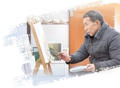 一手托著調(diào)色盤(pán),一手舉著畫(huà)筆,眼前一個(gè)畫(huà)架,陳云發(fā)常常沉浸在自己的創(chuàng)作中。過(guò)去,陳云發(fā)以種田和做泥瓦工為生。藝術(shù)區(qū)建設(shè)期間,陳云發(fā)家中的幾間房子被張佰橋租來(lái)存放畫(huà)具。藝術(shù)家們創(chuàng)作時(shí),陳云發(fā)也在旁邊看。后來(lái),張佰橋送給陳云發(fā)一套畫(huà)具,“感興趣,就跟著學(xué)!”